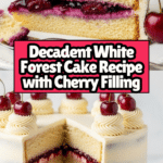 This White Forest Cake is a delightful twist on the classic Black Forest cake, featuring layers of moist white cake, a luscious cherry filling, and a creamy white chocolate frosting. Perfect for special occasions, this cake balances sweet cherries with smooth white chocolate and fluffy frosting for an elegant and delicious dessert.