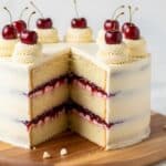 Keywords: white forest cake, white chocolate cake, cherry filling, white chocolate frosting, layered cake, dessert recipe